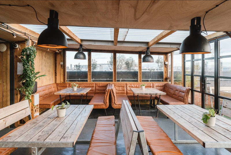 The covered terrace at Netil360 is your go-to spot for cosy catch-ups, cocktails, and stone-baked pizza straight from our open-plan pizza stove. With a long bar, plenty of seating, and protection from the elements, it’s the perfect all-weather hangout, ideal for group bookings, casual drinks, or warming up before sunset.